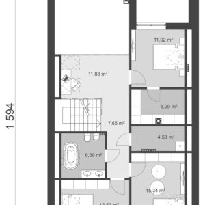 Projekt domu uA27 to propozycja domu w stylu klasycznym dla 4-5 osobowej rodziny. Prosta, zgrabna bryła przykryta została dachem dwuspadowym. Ciekawe wykończenie elewacji nadaje temu projektów charakterystycznego charakteru. Dom, mimo kompaktowych wymiarów jest bardzo funkcjonalny. Wnętrze uA27 jest przestronne i jasne, a ponadto podzielone zostało w jasny sposób. Na parterze znajduje się wiatrołap z garderobą, z przejściem do jednostanowiskowego garażu, gabinet, składzik zlokalizowany pod schodami, ogólnodostępna łazienka oraz jadalnia, salon i otwarta kuchnia. Kondygnacja wyżej to przestrzeń do pracy na antresoli, trzy sypialnie, w tym jedna z własną garderobą, łazienka oraz praktyczna pralna. Projekt dostępny jest również w odbiciu lustrzanym. Projekt uA27 to idealna propozycja dla osób, które szukają wygodnego i praktycznego domu.