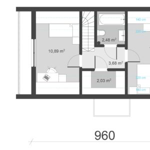 Gotowy projekt domu uA284 jest to godna uwagi propozycja nowoczesnej stodoły z interesującym zadaszeniem balkonu i tarasu na szczycie budynku. Prosta forma stodoły z dwuspadowym dachem urozmaicona została nowoczesnym w swej formie zadaszeniem nad wejściem głównym. Elewacja zewnętrzna to ciekawe i efektowne połączenie grafitowej blachy w rąbek z naturalną, drewnianą okładziną. Ten wykonany w technologii drewnianej gotowy projekt domu zapewnia domownikom dostęp do 72m2 powierzchni użytkowej mieszkalnej. Na parterze zaplanowano klimatyczny salonik z aneksem kuchennym oraz miejscem na stół oraz niewielką, przytulną sypialnię w sąsiedztwie, której znajduje się łazienka z toaletą i prysznicem. Na tej kondygnacji zaplanowano także pomieszczenie gospodarcze, dostępne z wiatrołapu. Na poddaszu czyli w strefie nocnej znajdują się dwie sypialnie, łazienka z wanną oraz garderoba. Projekt ten występuje również w wariantach pod nazwą uA284v1, z nieco innym układem strefy dziennej oraz uA284v2 powiększony o 10 m2.