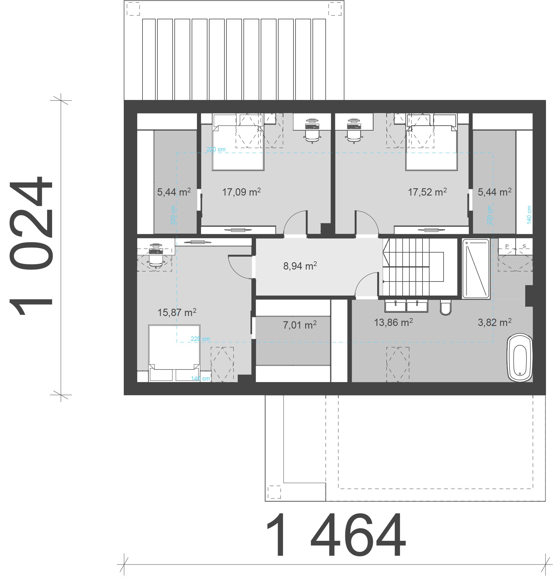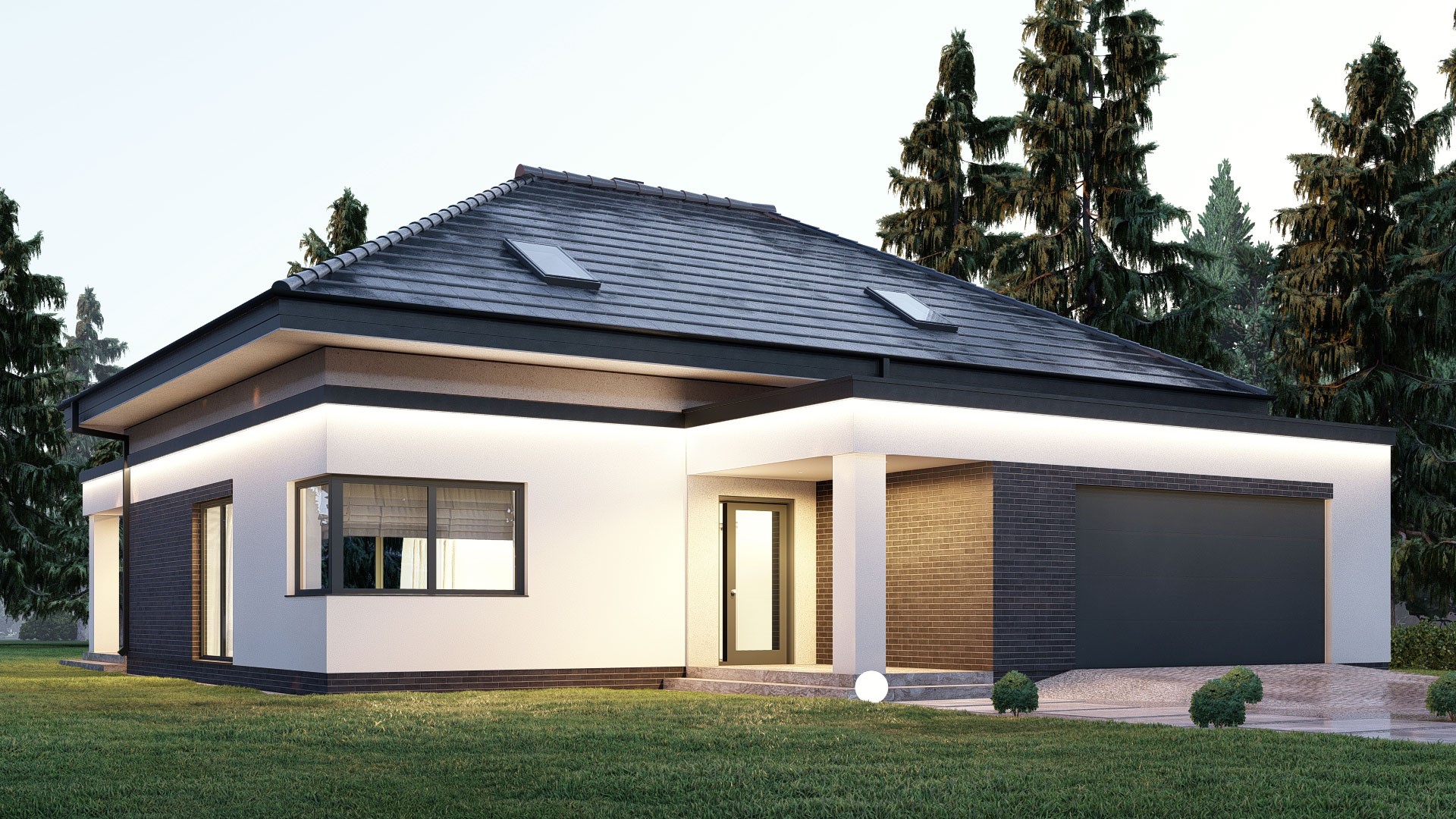 uA329 to projekt domu z poddaszem użytkowym o powierzchni użytkowej mieszkalnej 178 m2. W wewnętrznym układzie funkcjonalnym ulokowano otwartą strefę dzienną z wyjściem na taras: jasny salon , jadalnia oraz kuchnia z podręczną spiżarnią. Dopełnieniem programu parteru jest dodatkowy pokój na parterze, który służyć może jako pokój gościnny lub gabinet. W strefie nocnej na poddaszu zaplanowano trzy przestronne sypialnie o powierzchni 17 m2 , 17,50 m2 oraz 16 m2, dodatkowo wyposażone w garderoby. W projekcie znajdują się dwie łazienki: mała łazienka w strefie dziennej oraz duża łazienka z wanną i prysznicem oraz strefą pralni na poddaszu. Dodatkowym atutem tego projektu jest praktyczny garaż na dwa auta z pomieszczeniem gospodarczym.