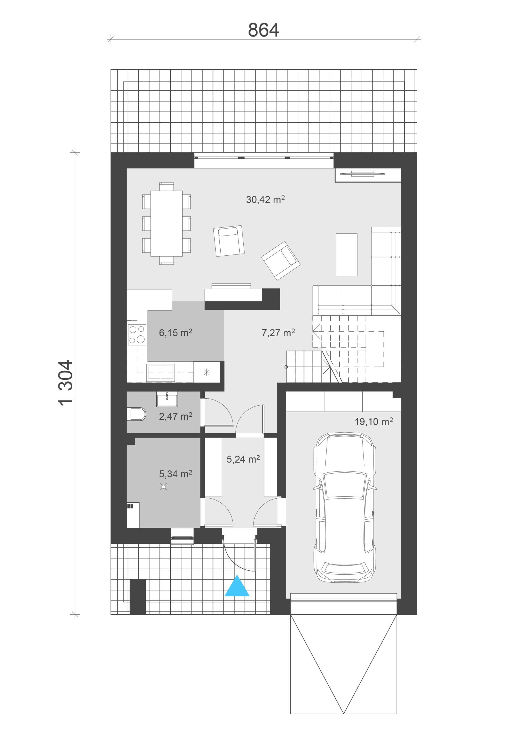 uA88 jest to ciekawa propozycja zarówno dla deweloperów, jak i klientów indywidualnych. Jest to projekt, który możemy modyfikować i występować może w wielu wariantach: jako dom jednorodzinny dwulokalowy (bliźniak) lub jednolokalowy ( tzw. połówka) czy też w formie zabudowy szeregowej. Jeden moduł ma powierzchnię użytkową 125,69 m2 . W bryle znajduje się jednostanowiskowy garaż. Na dole, w strefie dziennej zaprojektowano salon z jadalnią i kuchnią oraz toaleta i pomieszczenie gospodarcze. Na piętrze, w strefie nocnej znajdują się trzy sypialnie, ogólnodostępna łazienka oraz pralnia i garderoba. Całość stanowi idealne połączenie komfortu mieszkania i funkcjonalności układu pomieszczeń. Elewacja zewnętrzna utrzymana w nowoczesnym stylu z wykorzystaniem blachy w rąbek stojący. Wejście zostało zaakcentowane betonową pergolą, dzięki czemu uzyskało reprezentacyjny charakter.