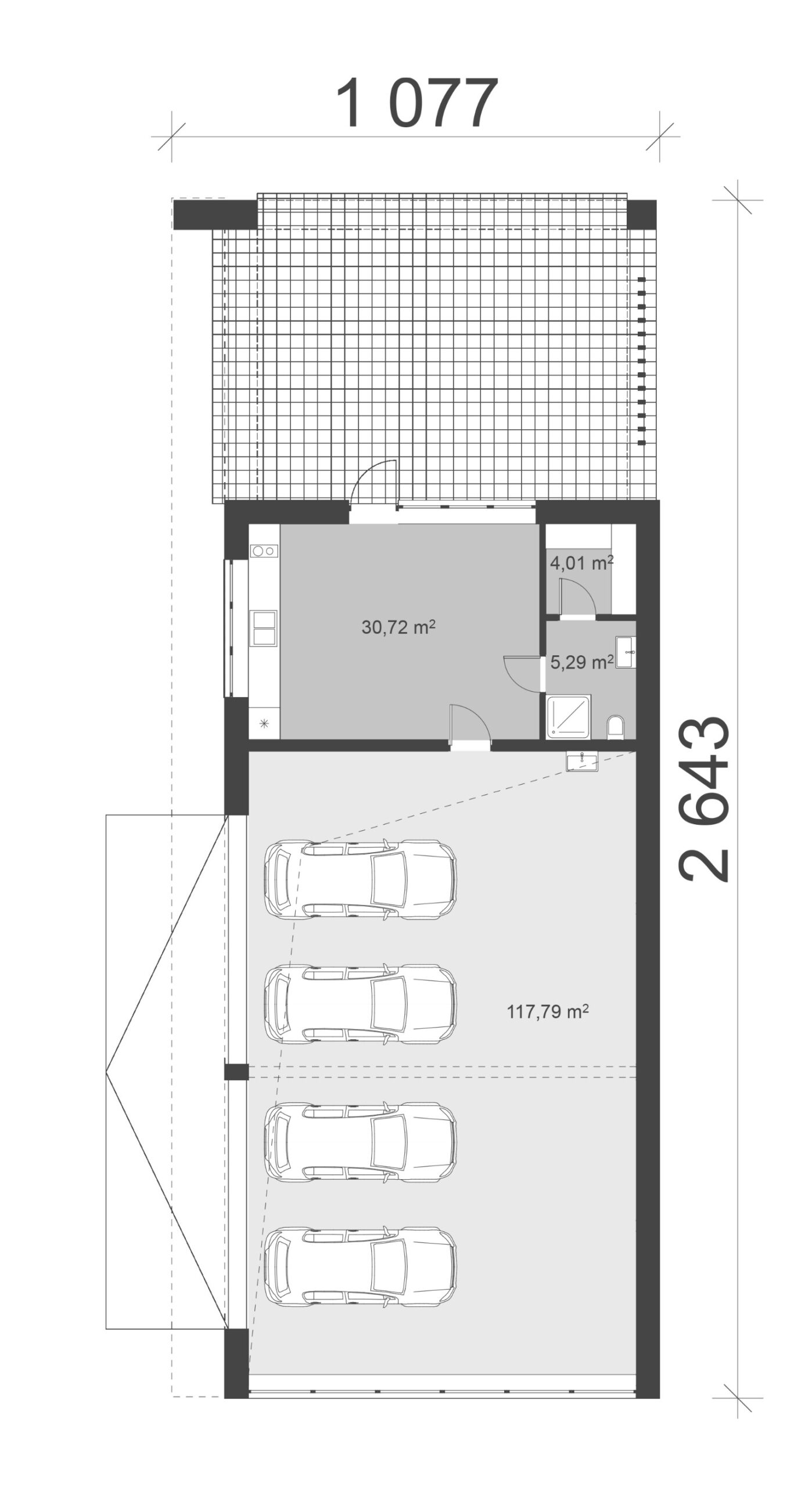 Projekt uAG11 jest to propozycja budynku gospodarczego łączącego w sobie funkcję garażu, letniej kuchnii z toaletą i prysznicem oraz miejsca rekreacji w postaci dużego, zadaszonego tarasu. Bryła utrzymana jest w nowoczesnym stylu, przykryta dachem dwuspadowym bez okapu. W części tarasowej zastosowano przepierzenie wykonane z pionowych belek. Całość budynku ma 158 m2 powierzchni, a część garażowa pomieści 4 auta oraz inne sprzęty. Ten projekt występuje również w wariancie bez tarasu pod nazwą uAG11v1.
