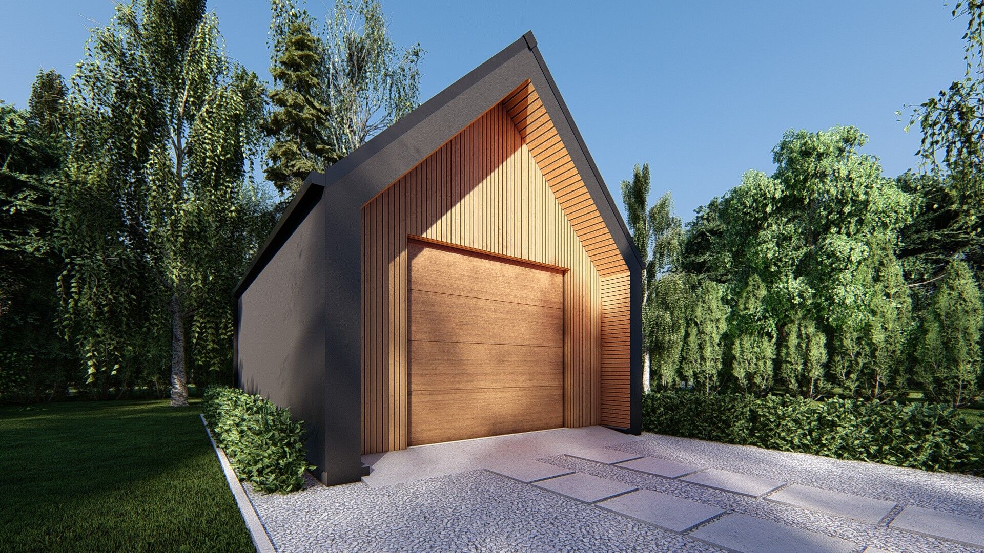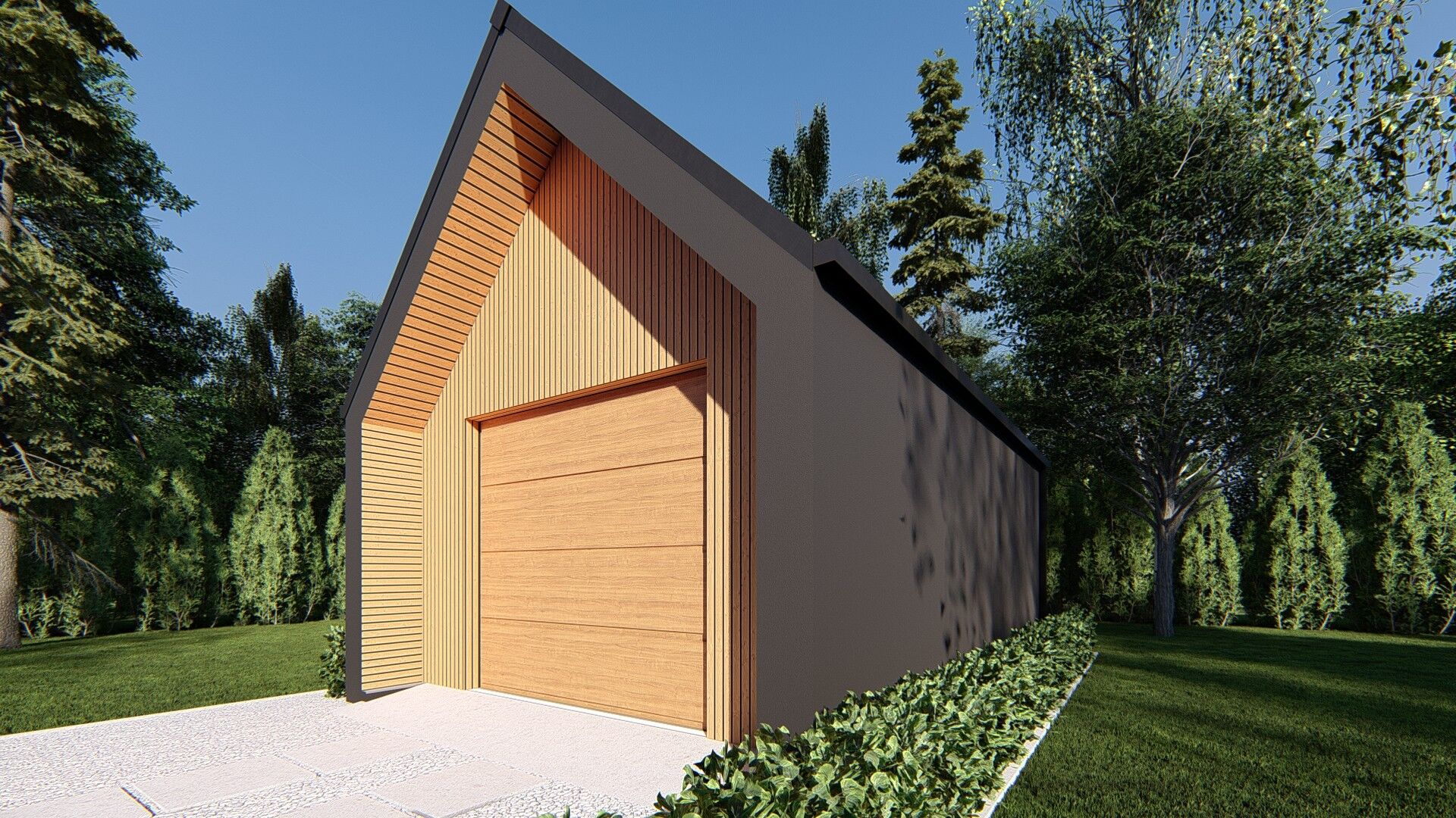 Gotowy projekt uAG19 jest to propozycja murowanego budynku garażowego jednostanowiskowego. Nowoczesna bryła z dwuspadowym dachem bez okapu z kalenicą prostopadłą do wjazdu. Powierzchnia garażu to 21m2.