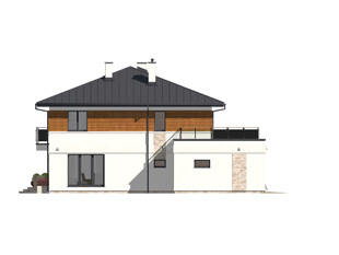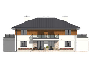 Waniliowy to projekt domu jednorodzinnego w zabudowie bliźniaczej, który wyróżnia się niebanalną stylistyką. Charakterystycznym elementem budynku są garaże, wysunięte od frontu, nad którymi zaprojektowano rozległe tarasy. Program funkcjonalny budynku został podzielony na strefę dzienną i nocną. Na parterze znajduje się strefa dzienna z salonem, jadalnią, kuchnia z praktyczna spiżarnią oraz WC. Piętro tworzy strefę nocną, na którą składają się trzy sypialnie oraz rodzinna łazienka. Główna sypialnia gospodarzy posiada prywatną garderobę oraz balkon od strony ogrodu.