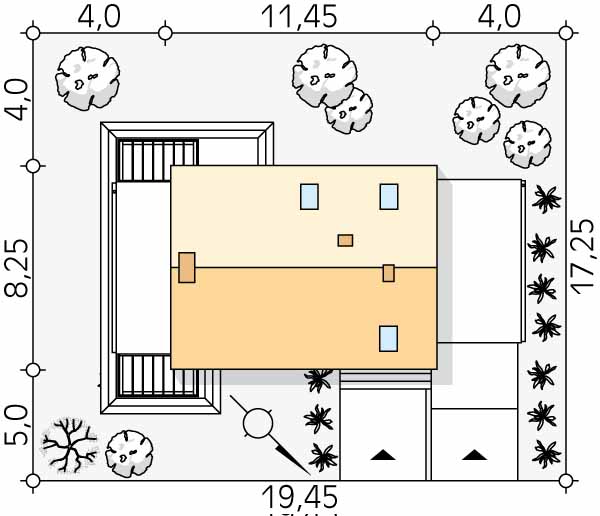Projekt domu Weranda 4 to projekt domu z użytkowym poddaszem, który idealnie wpasuje się na działkę z wjazdem od południa. Klasyczna, prostokątna bryła została przykryta dwuspadowym dachem pokrytym dachówką. Do budynku przylega praktyczna wiata garażowa. W projekcie znajduje się widoczny podział na strefę dzienną na parterze oraz nocną na poddaszu. Strefa dzienna składa się z przestronnego salonu z kominkiem, który znajduje się od frontu budynku, jadalni oraz otwartej kuchni. Na parterze znajduje się również łazienka z prysznicem oraz z wejściem do pomieszczenia, które idealnie sprawdzi się jako pralnia. Uzupełnieniem układu funkcjonalnego jest kotłownia dostosowana pod ogrzewanie gazowe oraz na paliwo stałe. Na poddaszu zaprojektowano cztery wygodne sypialnie oraz rodzinną łazienkę z wanną. Niewątpliwym atutem projektu jest taras z zewnętrznym kominkiem, który umili czas w chłodniejsze wieczory.