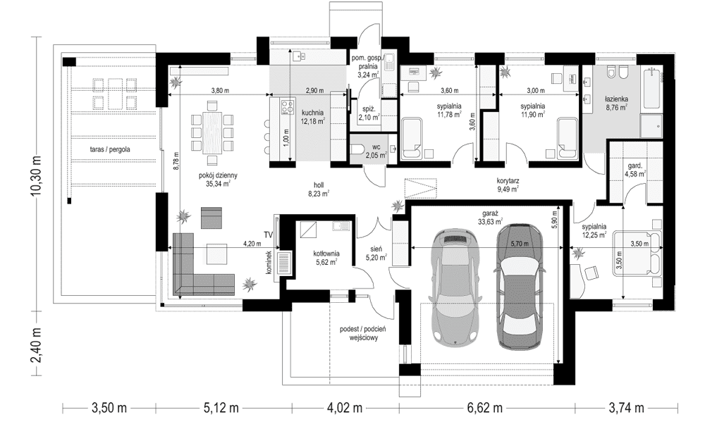 | Powierzchnia garażu: | 33,63 m2 |
