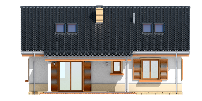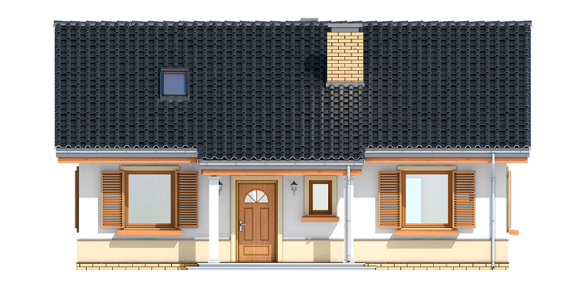 Projekt domu Żabka 3 to dom jednorodzinny dla 3- 5-osobowej rodziny, parterowego, ze strychem do dowolnej adaptacji (na cele użytkowe). Projekt domu Żabka 3 to wariant projektu Żabka, ze schodami na strych, strychem, oraz trzema sypialniami na parterze. Dzięki zwartej bryle i prostej konstrukcji dom jest bardzo ekonomiczny. Stosunek uzyskanej powierzchni domu, do kosztu budowy jest w porównaniu do konkurencyjnych projektów niezwykle korzystny. Prosta konstrukcja idzie w parze z łatwością wybudowania domu i niskim kosztem realizacji. Żabka 3 jest przy tym bardzo ładnym domkiem. Zachowane właściwe proporcje, tradycyjna forma architektoniczna, oraz nowoczesne materiały i detale, tworzą atrakcyjny wygląd zewnętrzny. Domek prezentuje się okazale. Wejście domu podkreślone jest zadaszeniem na kolumienkach. Z tyłu, od strony ogrodu elewację ozdabia podcień i taras. Wewnątrz na parterze wprowadzono następujący podział: po prawej stronie znajduje się część dzienna, z salonem i kuchnią, dostępna z obszernego holu. Z lewej strony umieszczono trzy niewielkie sypialnie domowników, łazienkę, oraz wc. Sypialnie można dowolnie dzielić – oddzielają je ścianki działowe, łatwe do dowolnego przestawiania. Przy przedsionku z szafami zaprojektowano pomieszczenie gospodarcze – kotłownię. Gazowa kotłownia może być bez kłopotu zastąpiona kotłem na paliwo stałe. Z bardzo ładnego holu schodami można dostać się na strych. Klatka schodowa oddzielona jest ścianami od pomieszczenia strychu – strych może być nieogrzewany. Projekt domu Żabka 3 to doskonała propozycja dla oszczędnych Inwestorów. Łatwa i klarowna konstrukcja pozwoli zmieścić się w niskim koszcie z budową, a doskonałe izolacje, energooszczędne materiały i technologie zapewnią przyszłym użytkownikom niewielkie koszty utrzymania domu. Pracownia posiada wersję podstawową – bez poddasza, lub wersję z zagospodarowanym poddaszem użytkowym. Posiadamy projekt w odbiciu lustrzanym oraz inne wersje: Projekt domu Żabka, Projekt domu Żabka 2. Zapraszamy!