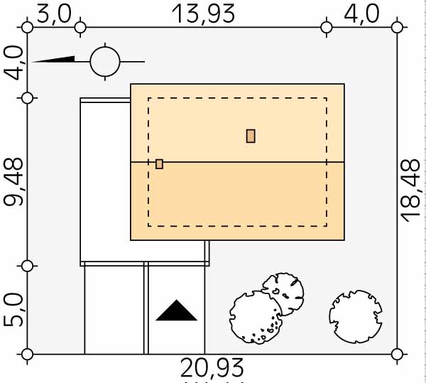 Jednorodzinny budynek mieszkalny, parterowy z użytkowym poddaszem, przeznaczony dla 4-osobowej rodziny. Na parterze w części dziennej zaprojektowano, salon z kuchnią i jadalni, wc oraz dodatkowy pokój. Na poddaszu przewidziano trzy sypialnie, łazienkę i garderobę. Budynek ma prostą klasyczną bryłę przykrytą dwuspadowym dachem.
