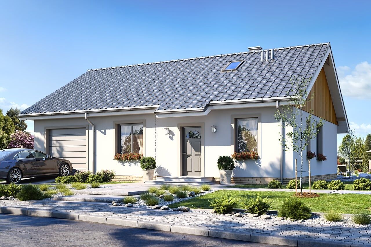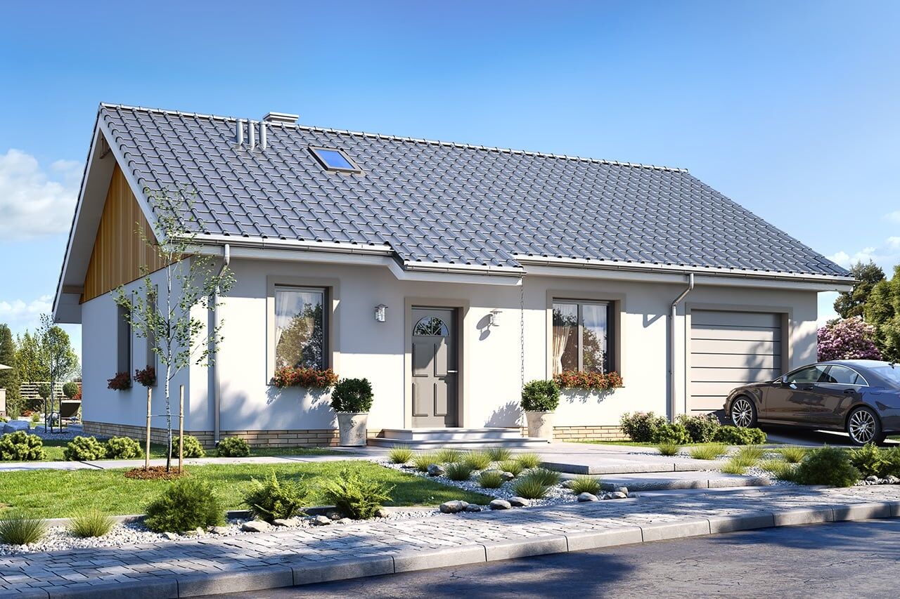 Projekt domu Zosia 6 jest kolejną wersją wariantową popularnego projektu domu jednorodzinnego z serii ”Zosia” – tym razem wersja domu z garażem w bryle budynku i kotłownią za garażem. Projekt domu Zosia 6 to nieco większa wersja wariantowa pierwotnego projektu – jej wymiary zewnętrze to 13 x 9,7 metrów. Dom Zosia 6 ma prostą i nieskomplikowaną bryłę i konstrukcję. Dzięki oszczędnej formie i swojej prostocie jest łatwy w budowie, a przez to niedrogi. Jednocześnie jest funkcjonalny i w stu procentach spełnia wymagania komfortowego mieszkania dla czteroosobowej rodziny. Dom przykryto dwuspadowym dachem o kącie 30 stopni. Nad parterem przewidziano więźbę z wiązarów kratownicowych. Na strychu można przechowywać lekkie przedmioty dostając się na górę schodkami drabinkowymi. Wariantowo można zmodyfikować więźbę dachową na strop drewniany belkowy i więźbę dachową z krokwi i zamienić strych na niewielkie poddasze. Do domu wchodzimy przez przedsionek z dużą szafą do holu i salonu. Po bokach niedaleko wejścia zaprojektowane są sypialnie dziecięce, głębiej mamy przestrzeń dzienną – z kuchnią oddzieloną ścianą kominkowo-telewizyjną, oraz salon z kącikiem na meble wypoczynkowe i miejscem na stół jadalny. Dalej przewidziano nieco wydzieloną od reszty wnętrza sypialnię rodziców. Z holu dostępne są z korytarzyka łazienka i wc, oraz dalej, za podwójnymi drzwiami garaż i kotłownia. Kotłownia w projekcie jest przewidziana jako gazowa, ale można ją w łatwy sposób zamienić na kotłownię na paliwo stałe. Projekt domu Zosia 6 – biorąc pod uwagę niewielką powierzchnię użytkową – jest bardzo funkcjonalny i ma rozbudowany program pomieszczeń. Nie ma tutaj zmarnowanej przestrzeni – wszystko jest zagospodarowane logicznie i praktycznie. Dom ma bezpretensjonalną i przyjemną dla oka stylistykę. Budynek będzie się dobrze komponował zarówno na przedmieściach, jak i na wsi, wśród luźniej zabudowy. Zdecydowaną zaletą domków z serii „Zosia” jest ich prostota i funkcjonalność, przekładające się na maksymalny efekt inwestycji uzyskany za niewielkie pieniądze. Każdą kolejną wersję domu z tej serii staramy się projektować jeszcze lepiej i sensowniej. Dom Zosia 6 jest zaprojektowany jako energooszczędny, bardzo dobrze ocieplony. Będzie dzięki temu tani w późniejszej eksploatacji. Zapraszamy do zapoznania się z pełną ofertą pracowni MG Projekt tej serii: projekt domu Zosia, projekt domu Zosia 2, projekt domu Zosia 3, projekt domu Zosia 4, projekt domu Zosia 5, projekt domu Zosia 7, projekt domu Zosia 7B, projekt domu Zosia 8. Zapraszamy!