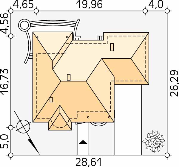 Dom jednorodzinny przeznaczony dla 3 – 4-osobowej rodziny. W części dziennej zaprojektowano salon z jadalnią, kuchnię ze spiżarnią. W części nocnej pokój, sypialnia z garderobą oraz dwie przestronne łazienki. Duży garaż dwustanowiskowy.