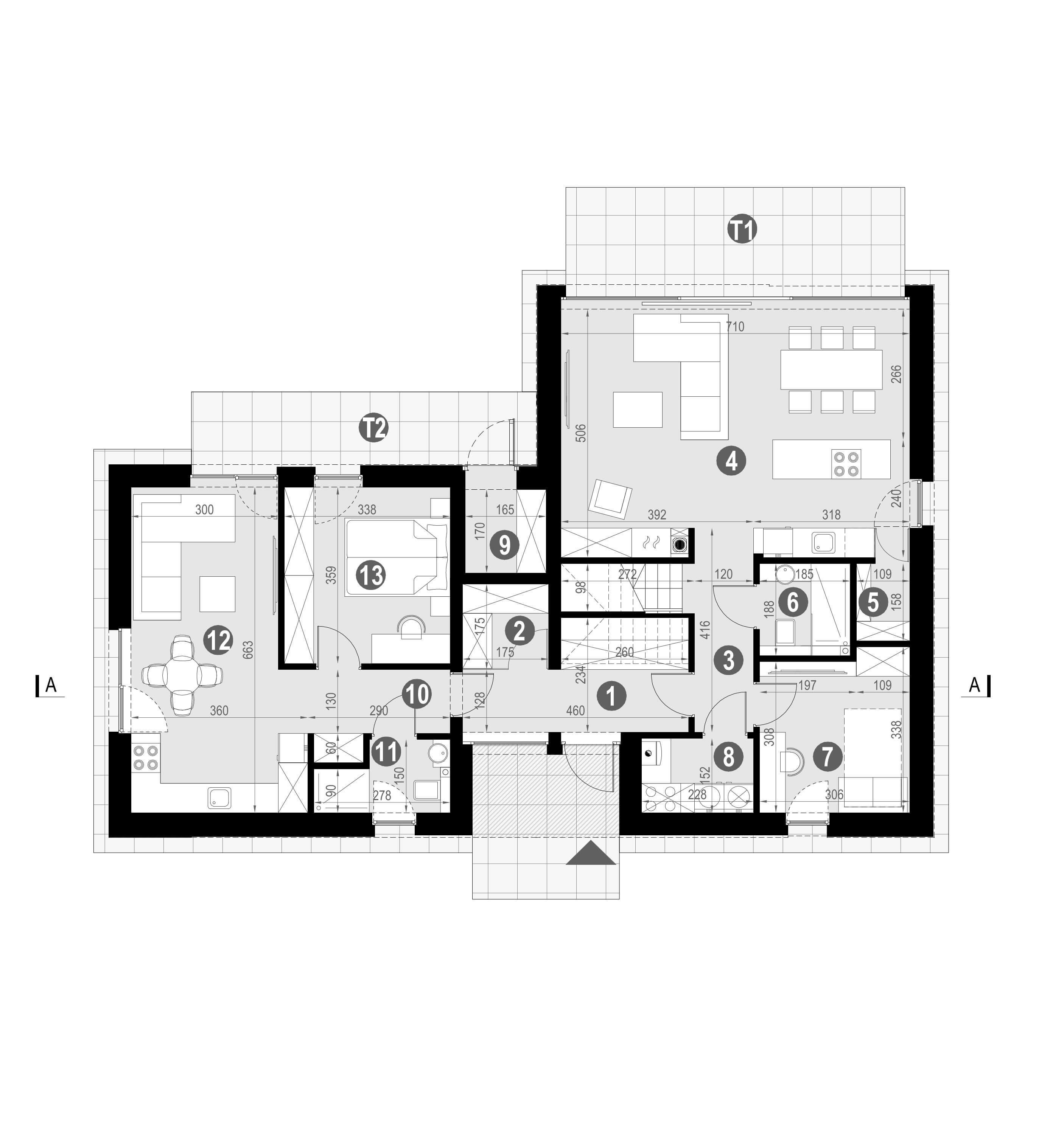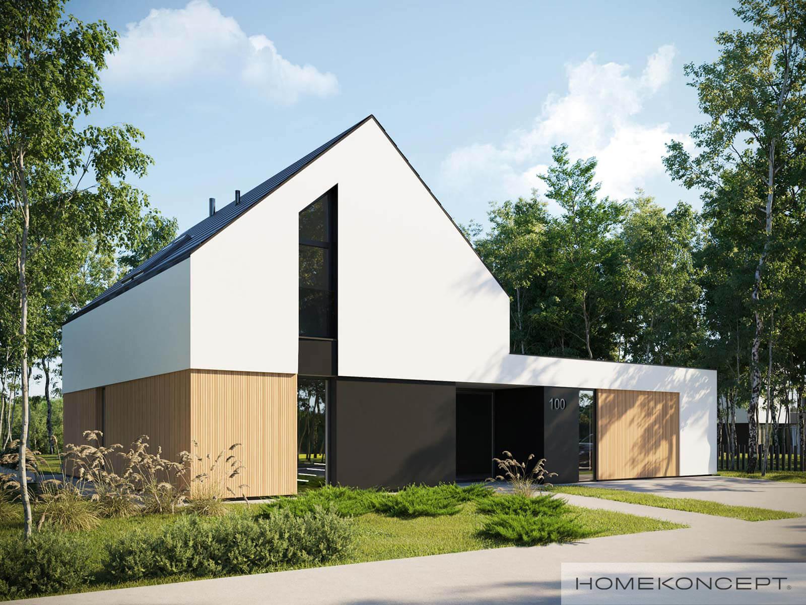 | Elewacja | tynk silikonowy w kolorze białym i grafitowym połączony z drewnem elewacyjnym |