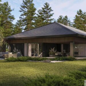 | Dach | prefabrykowane, drewniane wiązary dachowe firmy INTER – LERS, pokryte dachówką ceramiczną lub cementową swissporTON |
