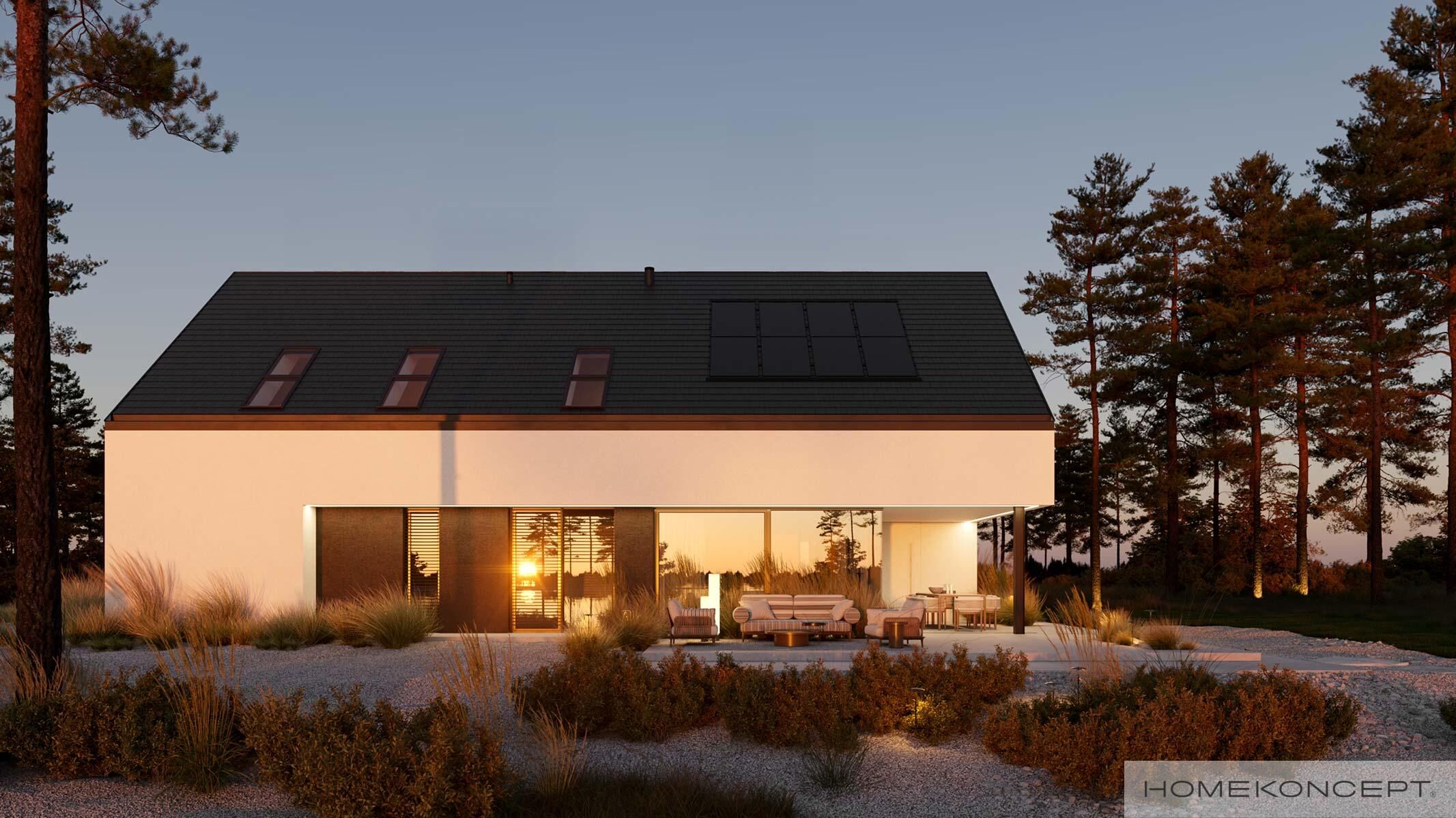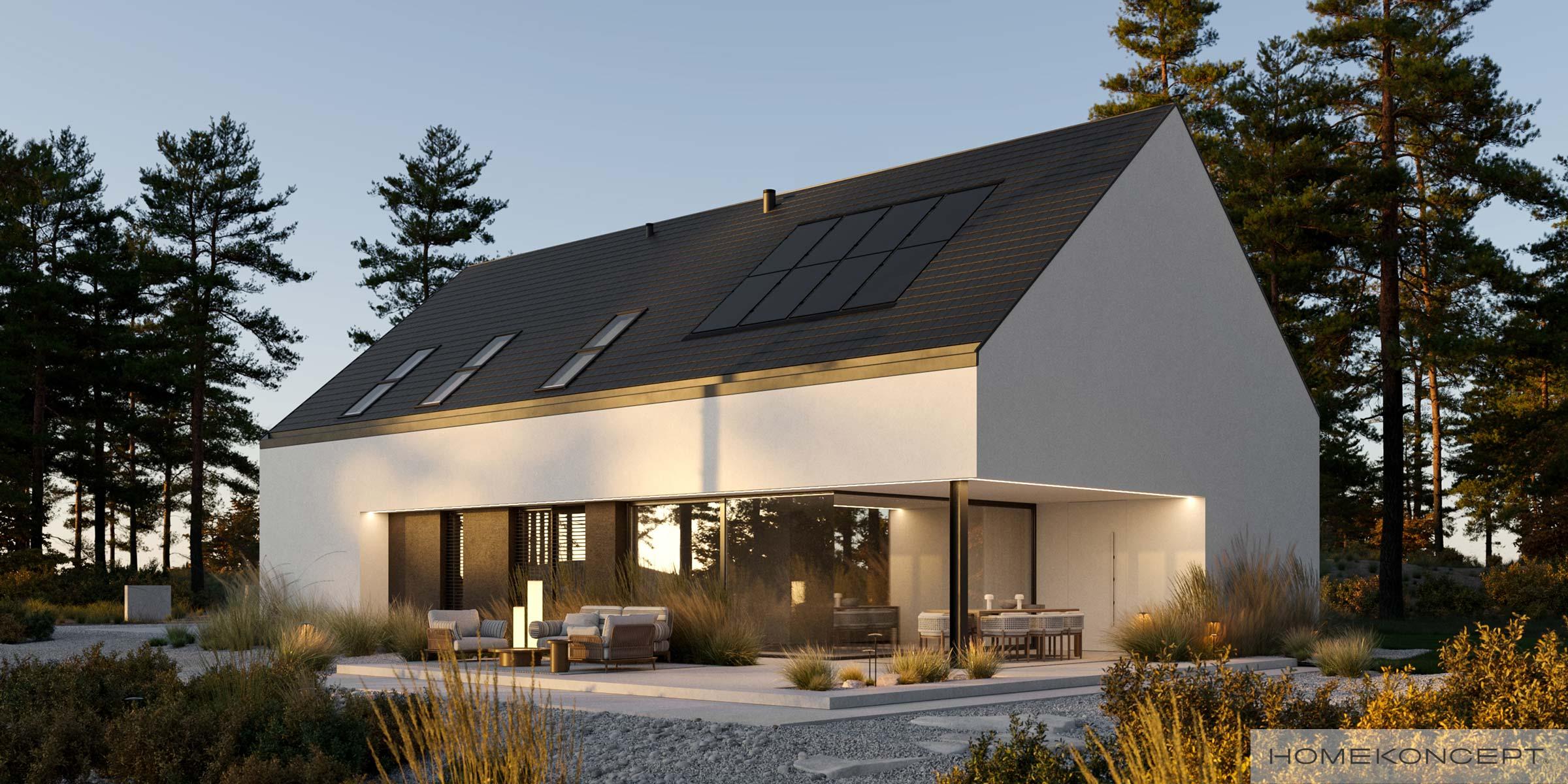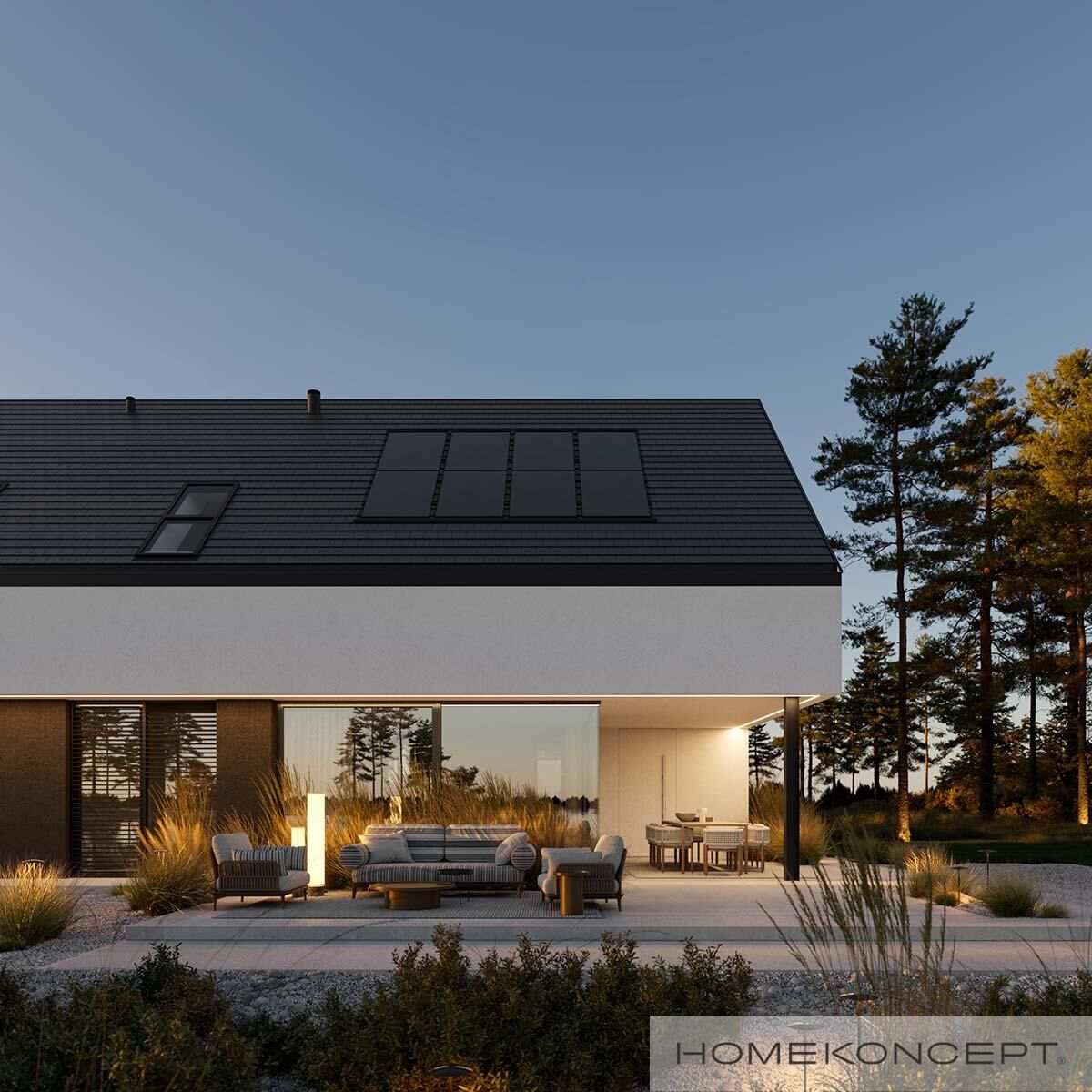 | Dach | dwuspadowy kryty dachówką ceramiczną lub cementową CREATON wraz z systemem fotowoltaicznym CREATON VARIO, okna dachowe FAKRO |