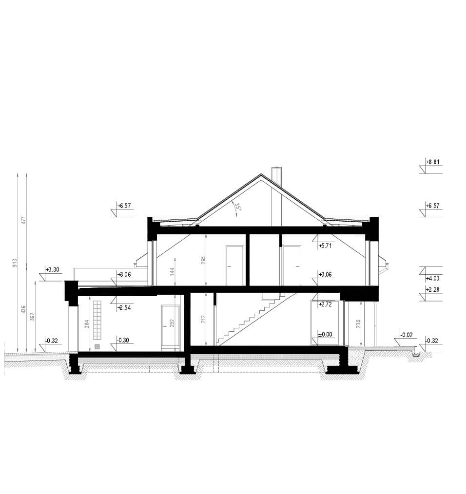 | Dach | tradycyjna więźba dachowa pokryta dachówką ceramiczną lub cementową CREATON, okna dachowe FAKRO, stropodach kryty membraną EPDM |